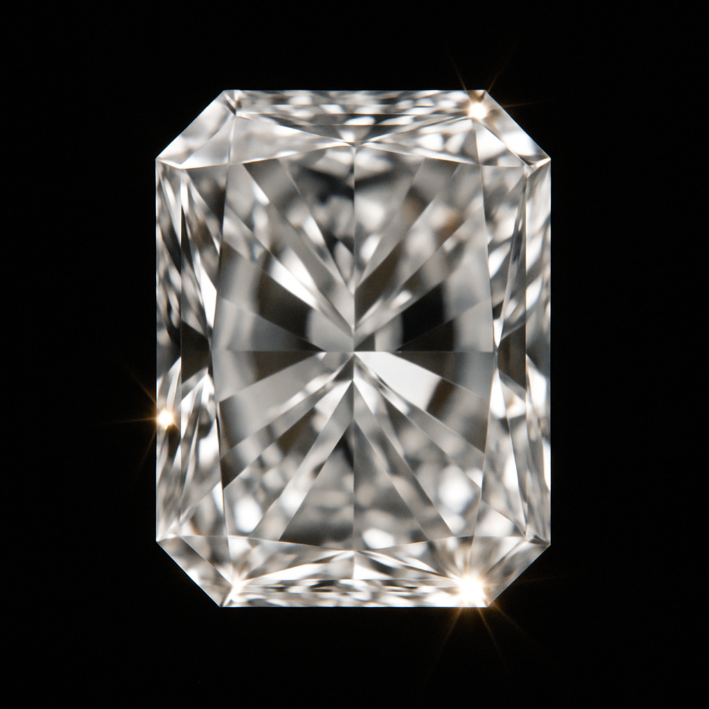 Radiant cuts are bright, bold, and energetic. Their intricate facets create a brilliant light display, but with structure. This shape is balanced between soft corners and intense sparkle, offering joy without excess. It suggests vibrance, movement, and presence.